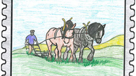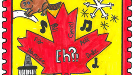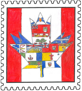 Comme prélude au projet des Fêtes du patrimoine, le concours Invente un timbre permet aux élèves de représenter, par le biais d’une œuvre d’art, un élément du patrimoine. Il peut s’agir d’un vieil édifice, d’un ancêtre, d’un paysage, d’un animal, d’un héro canadien, d’un événement historique important ou de n’importe quel autre élément spécial à ses yeux.
