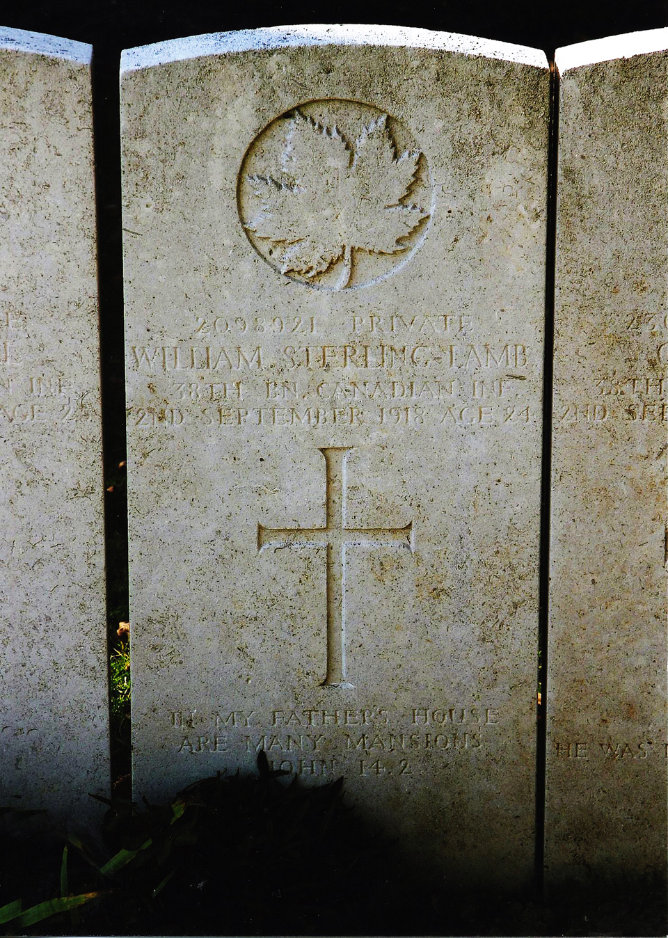 Lamb's cousin, William Edmund Sterling enlisted on January 8, 1916 and was gassed three times while serving overseas, which his family believes shortened his life. Born on May 19, 1894, in Deseronto, Ontario, he died in 1941.
