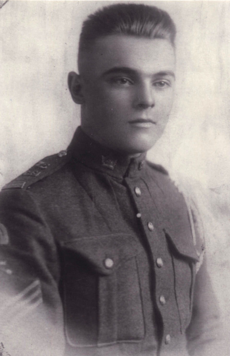Sgt. George Barnes Miller enlisted at Kingston, Ontario, in March 1917, and served in the Royal Canadian Artillery. He arrived in France shortly after the battle of Vimy Ridge. Miller was honourably discharged in January 1919 to continue his veterinary studies. After graduation, he practiced in Manitoba, once pulling a bad tooth out of a tiger at the Winnipeg Zoo. Later, he joined the Federal Department of Agriculture, working on safe food storage and transportation, earning membership in the Order of the British Empire (MBE).