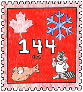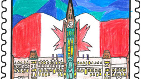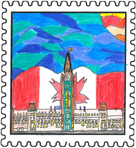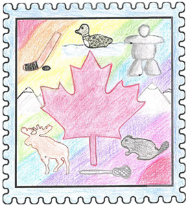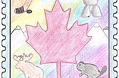 Comme prélude au projet des Fêtes du patrimoine, le concours Invente un timbre permet aux élèves de représenter, par le biais d’une œuvre d’art, un élément du patrimoine. Il peut s’agir d’un vieil édifice, d’un ancêtre, d’un paysage, d’un animal, d’un héro canadien, d’un événement historique important ou de n’importe quel autre élément spécial à ses yeux.